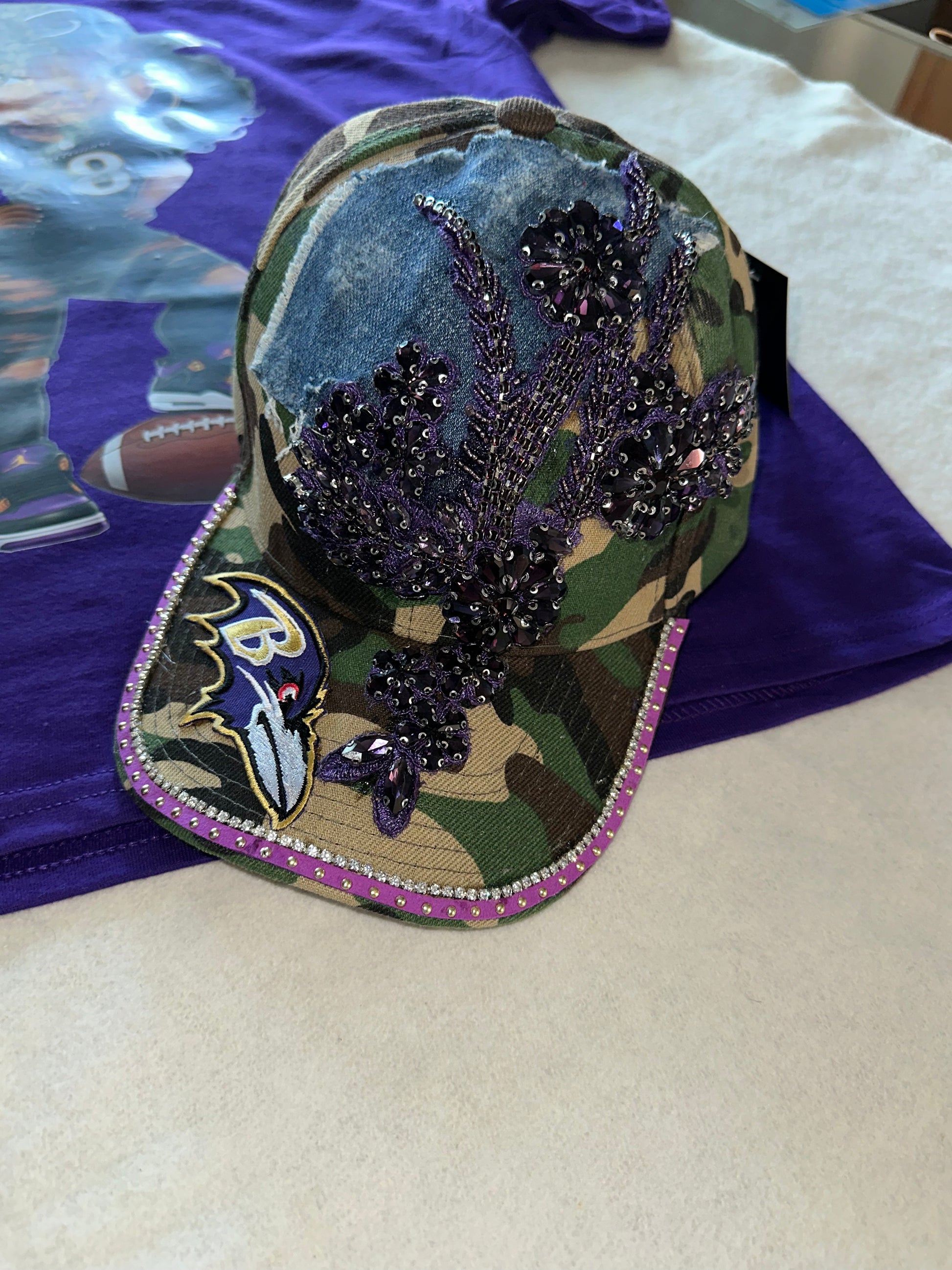 Showcase your passion for the Baltimore Ravens with this stylish camouflage hat. Designed for fans who appreciate both fashion and team spirit, this hat features eye-catching purple rhinestone beading that adds a touch of elegance.