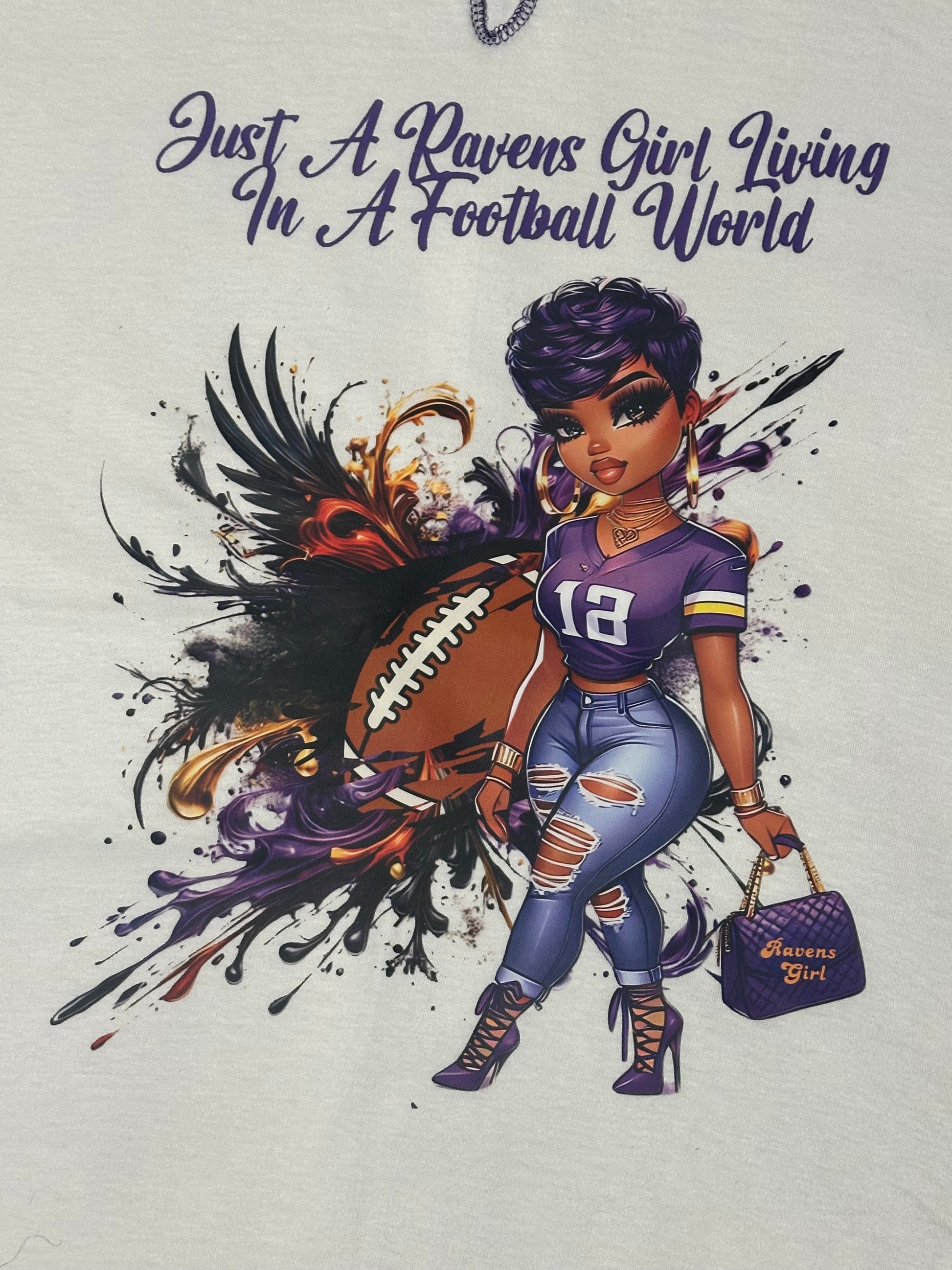 Ravens Girl is the perfect blend of style and team spirit. This white cotton tee is designed for those who want to showcase their love for the Ravens while looking fashionable.